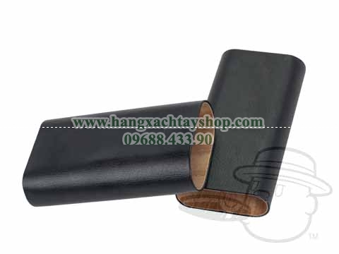 Hàng xách tay hộp đựng Cigar 60 Ring Pebble Grain Black Leather Churchill 3 Cigar Travel Case By Craftsman’s Bench