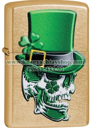 Look no further for the utmost fortunate yet frightful design. The Irish Skull design depicts a skull wearing a green St. Patrick’s day top hat with four-leaf clovers found throughout. This design is color imaged on a Gold Dust lighter. Comes packaged in a gift box. For optimal performance, fill with Zippo lighter fuel.
