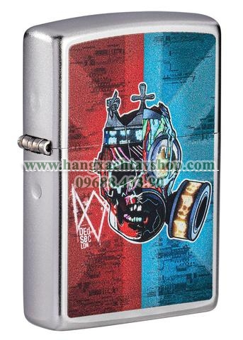 Keep calm and join the resistance. This Watch Dogs®: Legions design takes two masks, the Ded Coronet mask, and a gas mask, and splits the picture down the middle. The Watch Dogs logo sits on the left side of the design with “DedSec LDN” below it. This design is color imaged on a Satin Chrome™ lighter. Comes packaged in a gift box. For optimal performance, fill with Zippo lighter fuel.